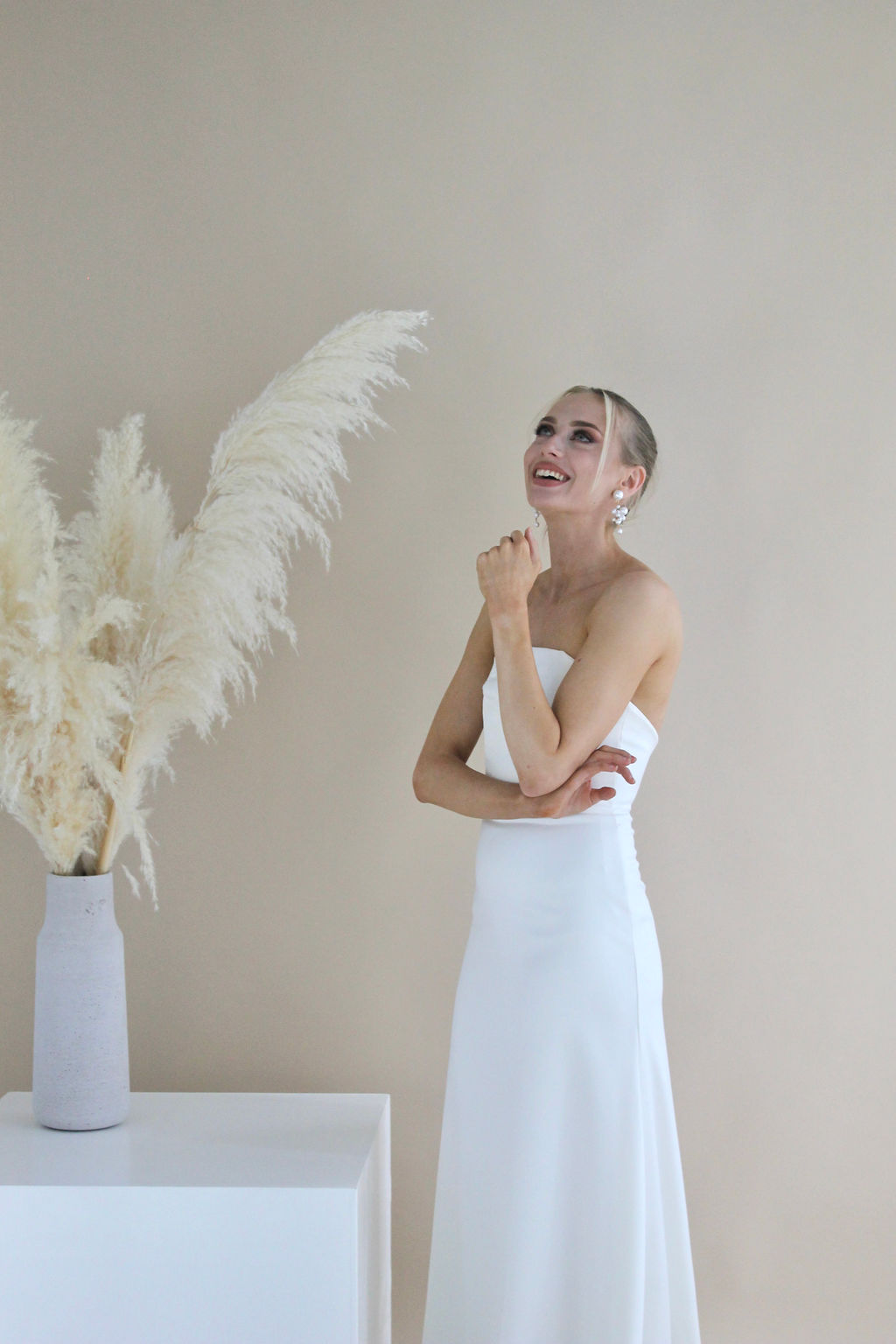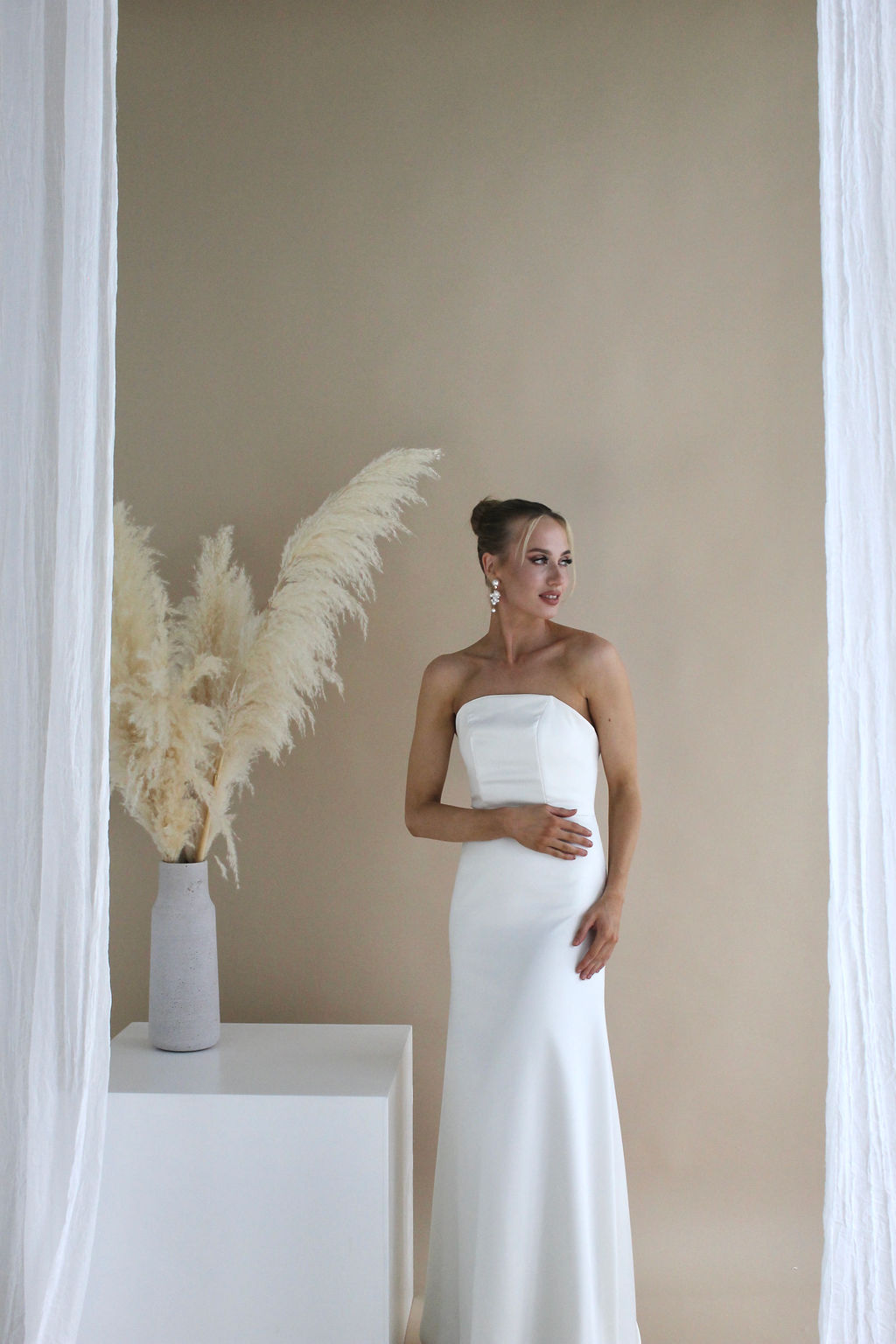 Book a meeting to try on our dresses in our Helsinki studio.