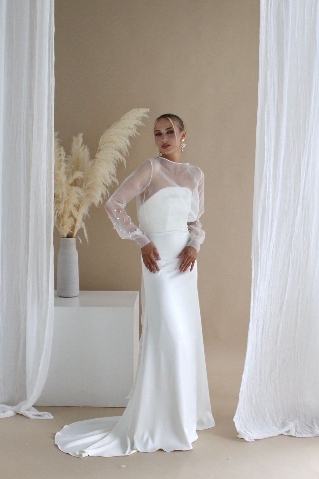 we can customise & change any detail to your liking- sleeves, neckline, back, train and more...